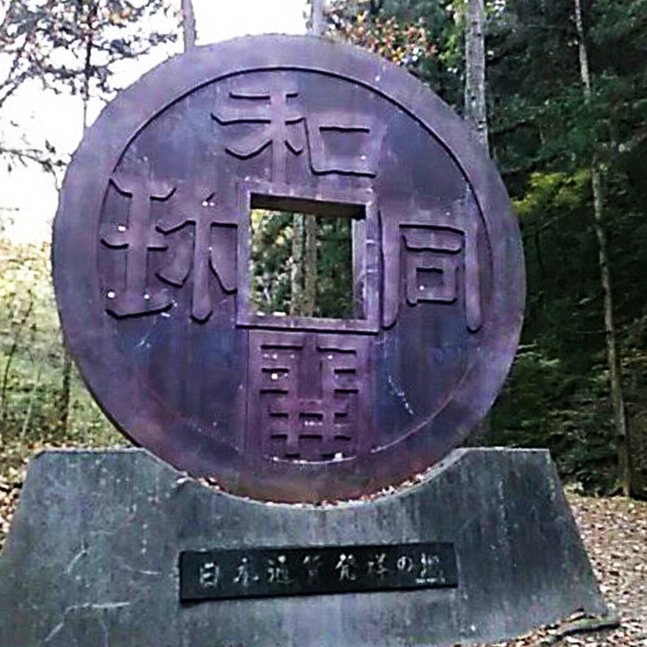 銅が採掘された場所の近くには、現在も銭神様として親しまれている聖神社と、和同開珎のモニュメントがあります。