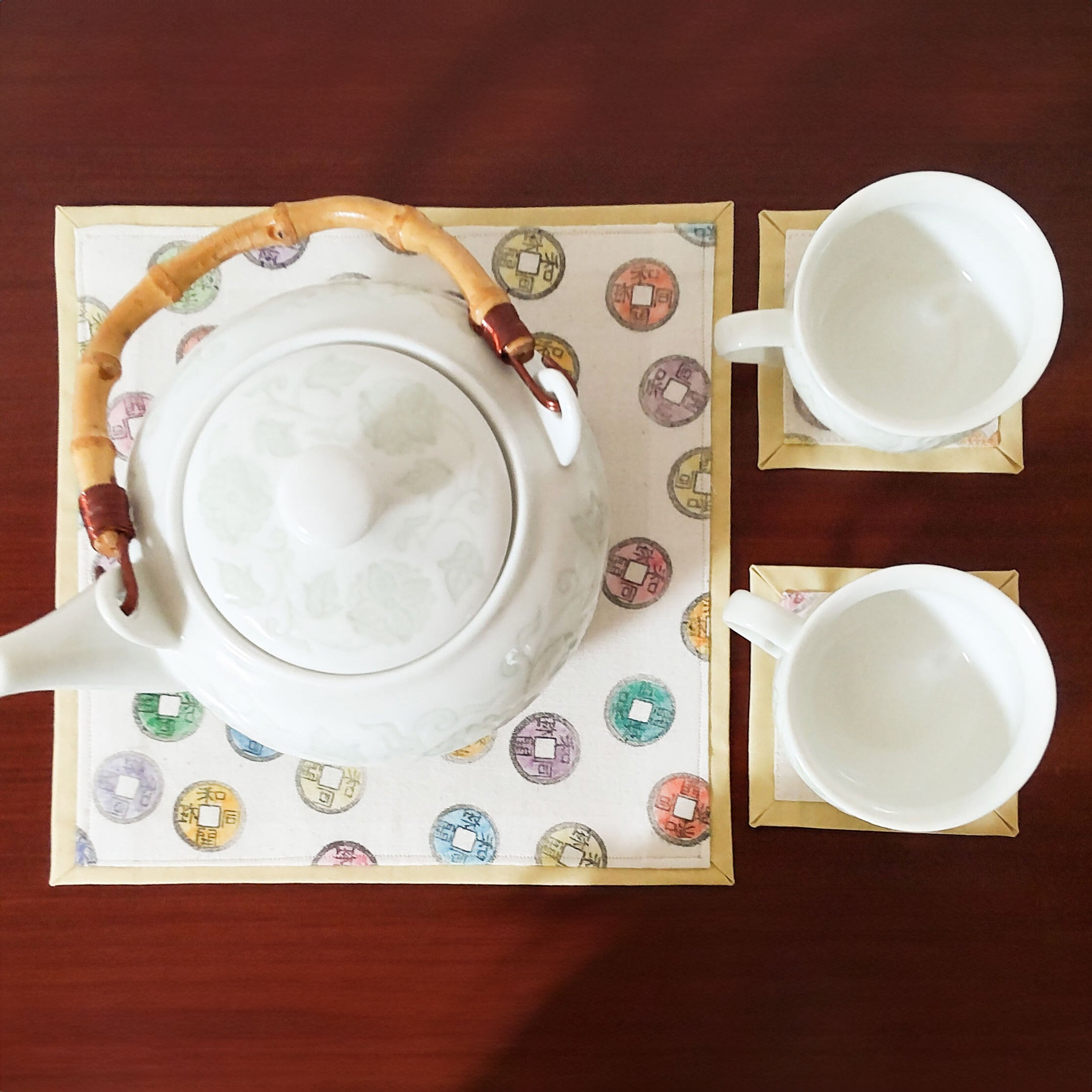 木版染め◇和同開珎・ティーセット / Tea set of Ancient Japanese Coin (Handmade)